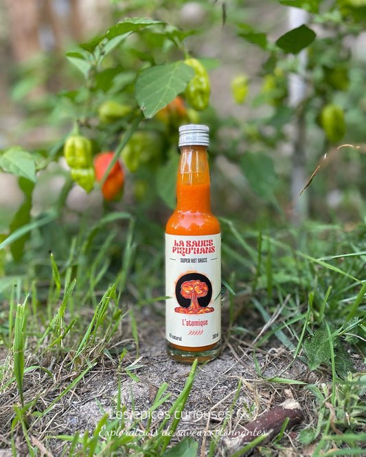 Nous faisons évoluer nos recettes avec vos retours.Piments (Bhut Julokia, habanero et oiseau) , vinaigre de cidre, eau, ail, sel, gomme naturelle de xanthan