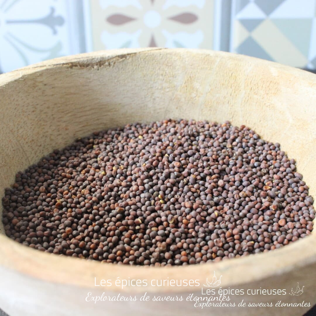 Pour magnifier les graines de moutarde noire, faites-les chauffer quelques secondes seulement dans une huile déjà chaude, jusqu’à ce qu’elles commencent à sauter légèrement. C’est à cet instant précis qu’elles offrent le meilleur d’elles-mêmes : un parfum plus ample, une belle rondeur aromatique et une présence parfaitement intégrée au plat. Versez ensuite immédiatement vos légumes, légumineuses ou aromates pour capturer toute cette intensité.