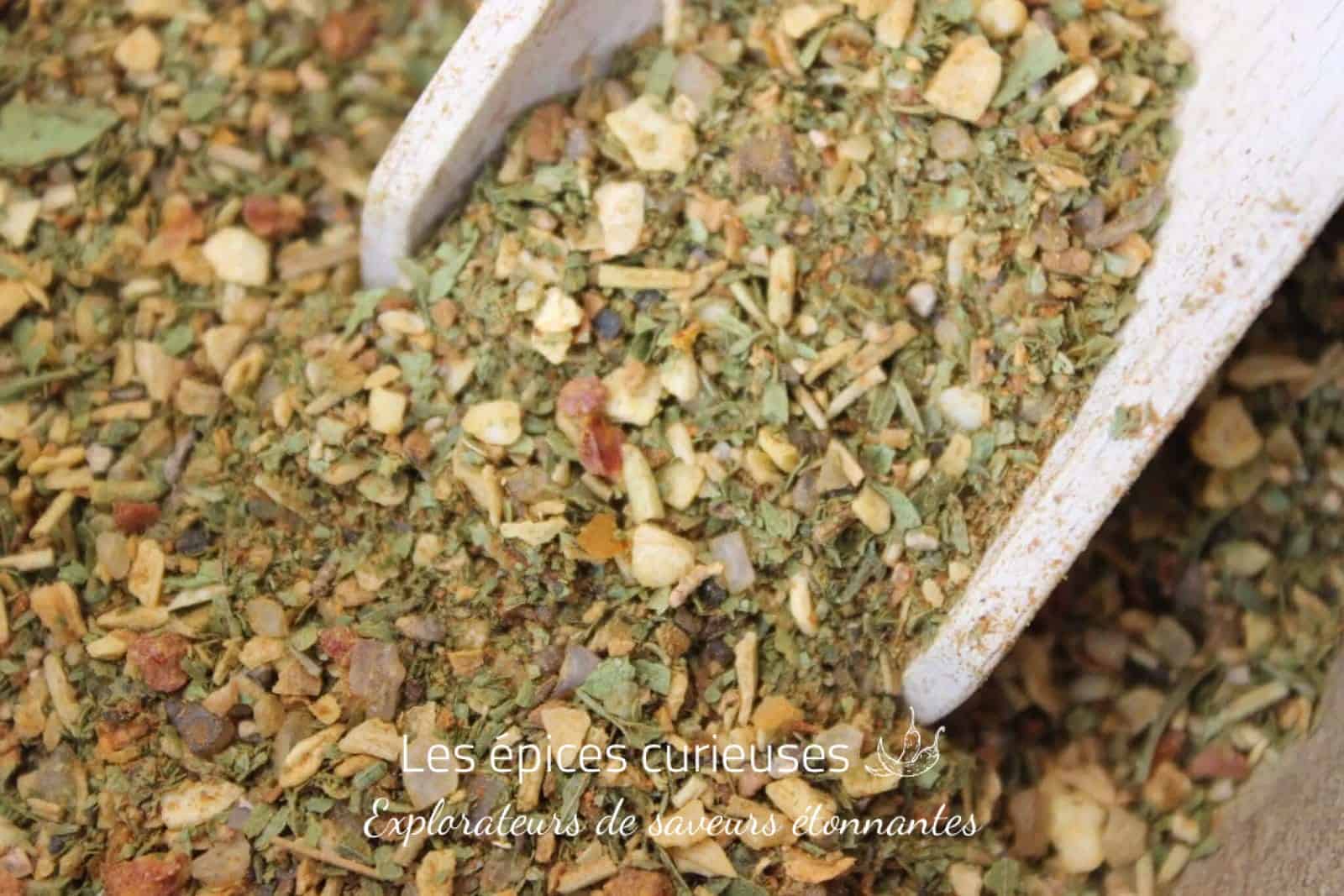 Le romarin, le thym et la marjolaine évoquent les paysages ensoleillés et les cuisines rustiques du Sud. La livèche, plus singulière, rappelle les vieux potagers et les recettes paysannes où chaque herbe avait sa place. Le sel fumé et l’oignon toasté apportent quant à eux une sensation de cuisson au feu, comme un souvenir de plaque brûlante, de lèchefrite caramélisée et de cuisine généreuse. Cet assemblage rend hommage à une gastronomie simple, conviviale et profondément savoureuse.