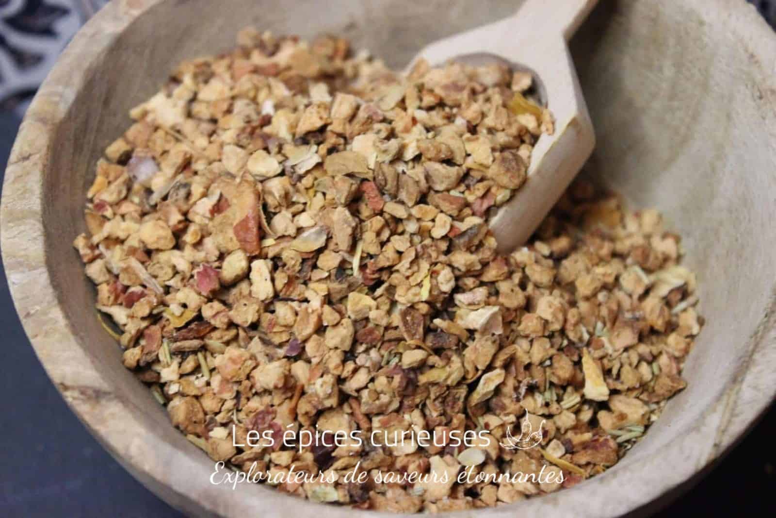 Pour révéler toute la complexité de l’Assemblage Yaourt gourmand, mélangez-le d’abord avec une petite cuillère de yaourt ou quelques gouttes d’eau tiède avant de l’incorporer au reste de la préparation. Cette pré-hydratation aide les zestes, fleurs et épices à libérer plus rapidement leurs parfums et offre une texture encore plus harmonieuse à la dégustation.